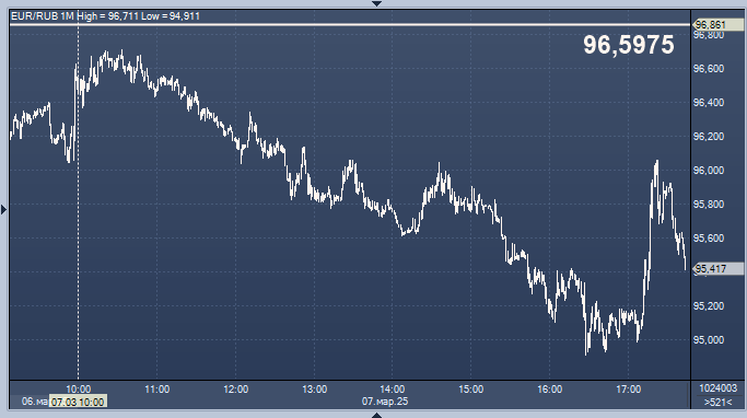 Китайский юань перешел к снижению после утреннего роста на Московской бирже днем в пятницу, пишет Интерфакс. Рубль развернулся вверх и повышается перед выходными днями и на фоне уверенно дорожающей нефти. Торги долларом и евро не проводятся на Московской бирже с 13 июня 2024 года из-за санкций. В связи с этим наиболее подходящими ориентирами колебаний курса (в том числе для внебиржевого рынка) являются котировки однодневного фьючерсного контракта с автопролонгацией на курс "доллар США - российский рубль" (USDRUBF) и такого же контракта на курс "евро - российский рубль" (EURRUBF).