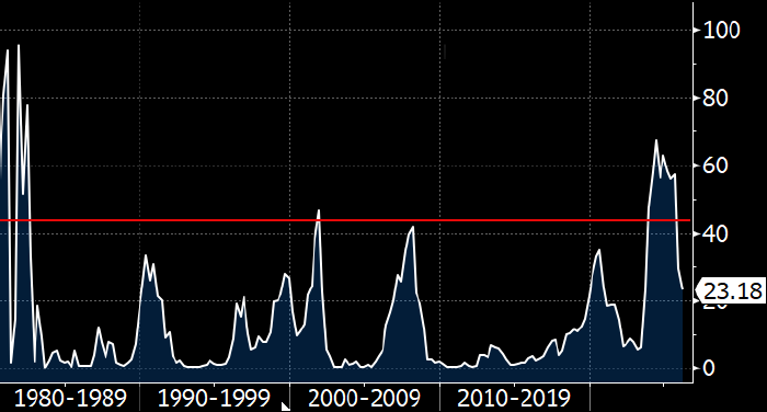Кроме того, в США довольно быстро растет безработица. Хеник Фанг напоминает, что в 1980, 1990, 2008 и 2020 годах наблюдался рост безработицы как минимум на 1 п.п., после чего во всех случаях цены на нефть показывали масштабное снижение. По подсчетам эксперта, в среднем, рост безработицы на 10 б.п. влек за собой снижение цен на нефть в среднем на 1,7%.