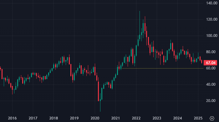 «Исходя их этих исторических данных, можно предположить, что, если безработица в США в ближайшие кварталы будет находиться на уровне 4,2%, как это предполагает консенсус-прогноз Bloomberg, то к 4 кв. 2025 г. котировкам нефти WTI так и не удастся вернуться выше $70 за баррель», — пишет эксперт. — «Если же безработица продолжит расти по направлению к 4,9% ко II кв. 2026 г., что представляет собой верхнюю границу прогнозов, то WTI может рухнуть ниже $60 за баррель в ближайшие кварталы».