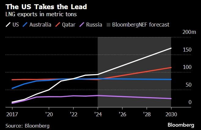 В течение семи лет США превратились из небольшого поставщика сжиженного природного газа в крупнейшего в мире. По оценке BloombergNEF, в первой половине второго срока президентства Дональда Трампа производственные мощности США планируется увеличить на 60%.