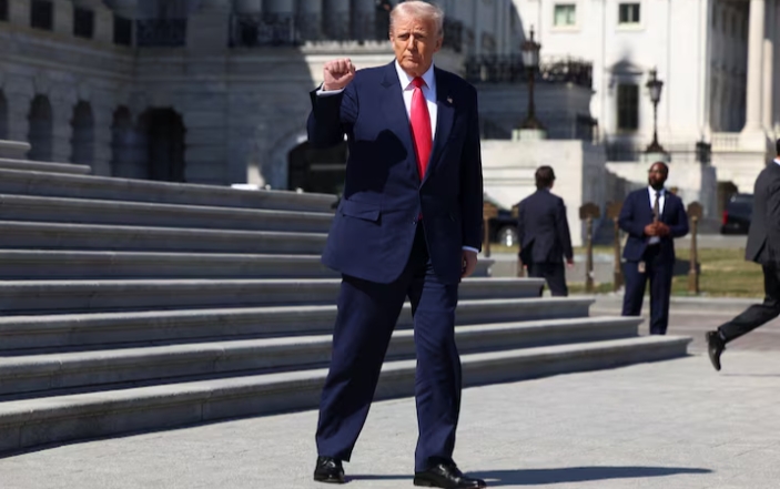 Президент США Дональд Трамп на ступенях Восточного фронта дома после ежегодного обеда Друзей Ирландии, Вашингтон, округ Колумбия, США, 12 марта 2025 г. REUTERS