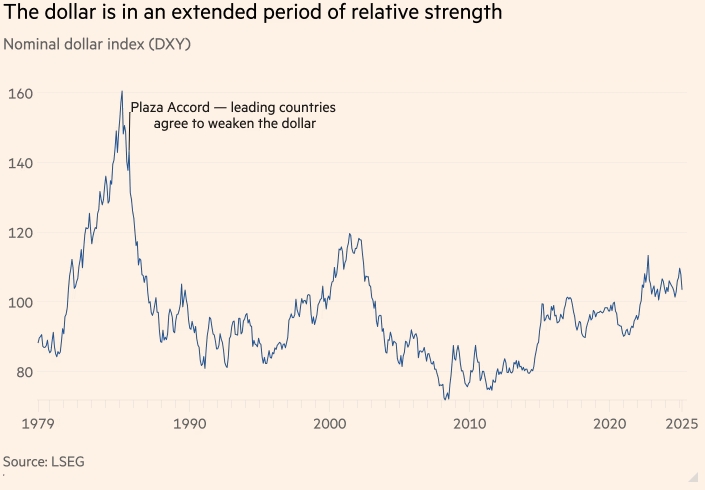 В течение нескольких месяцев после выборов он достиг самого высокого уровня по отношению к корзине торговых валют, включая евро и фунт, с 2022 года, а по отношению к более широкой группе валют — самого высокого за несколько десятилетий.