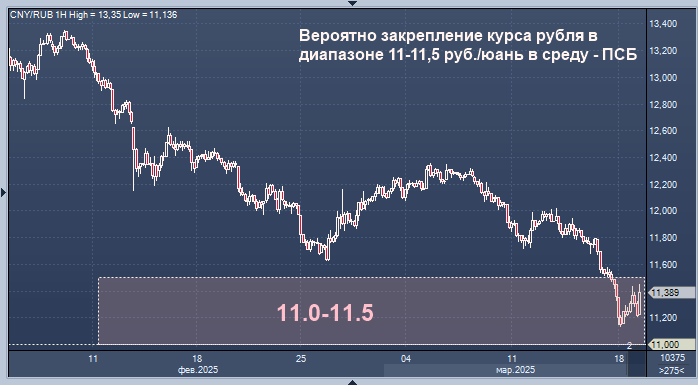 "Впрочем, в обвальное укрепление рубля не верим и в среду ориентируемся на закрепление курса в текущем диапазоне 11-11,5 руб./юань", - уточняет эксперт банка.