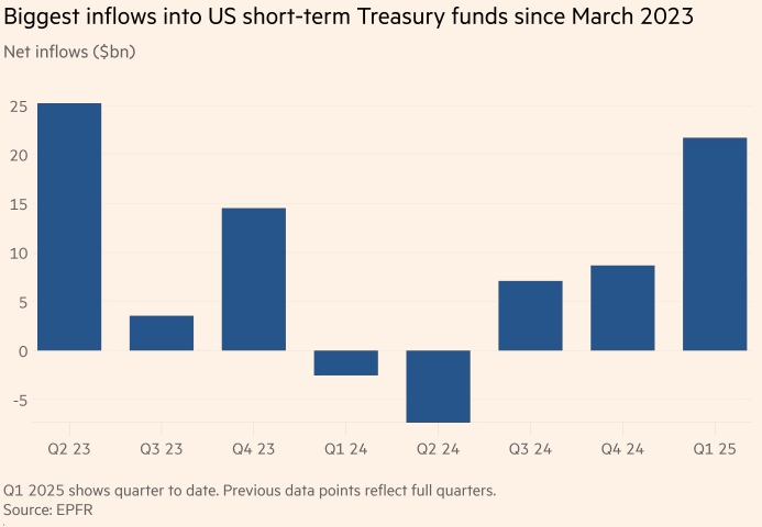 В этом году инвесторы вложили значительные средства в краткосрочные государственные облигации США на сумму около 22 миллиардов долларов. Это произошло после того, как опасения по поводу экономической и торговой политики президента Дональда Трампа вызвали опасения на рынках и привели к обвалу фондовых рынков.