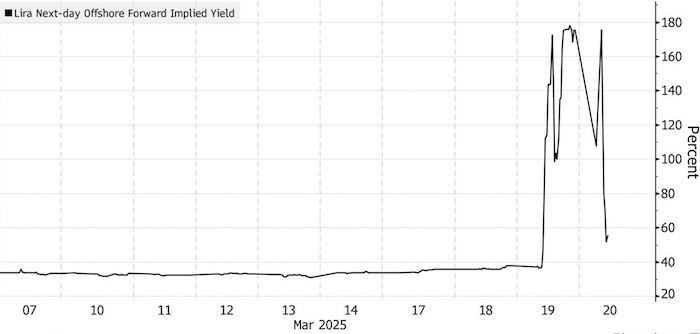 Долгосрочные государственные облигации выросли, при этом доходность 10-летних государственных облигаций упала на 121 базисный пункт до 29,53%. Так называемые форвардные подразумеваемые доходности следующего дня упали до 56% с максимума в 175% ранее.