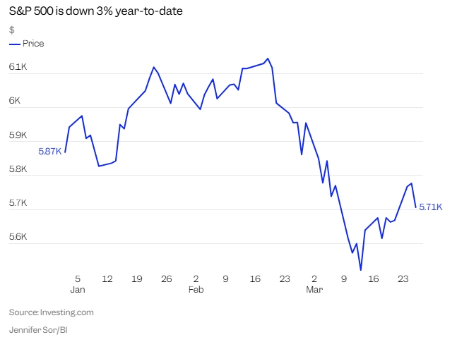 С начала года индекс уже потерял более 3%. Свежие опасения по поводу тарифов вызвали распродажу на рынке в конце торговой сессии. Трейдеры отреагировали на новости из Белого дома о том, что президент Дональд Трамп объявит о тарифах на автомобили в 16:00 по восточному времени. Индекс S&P 500 упал более чем на 1%, а индекс Nasdaq Composite — на 2%.