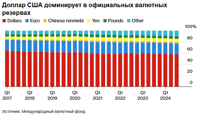 Трамп сотрясает основы доллара как мировой валюты. Он переворачивает торговлю тарифами и словесными нападками как на друзей, так и на врагов, ослабляя обязательства перед НАТО. Советники говорят о так называемом Соглашении Мар-а-Лаго, которое может реорганизовать мировые финансы.
