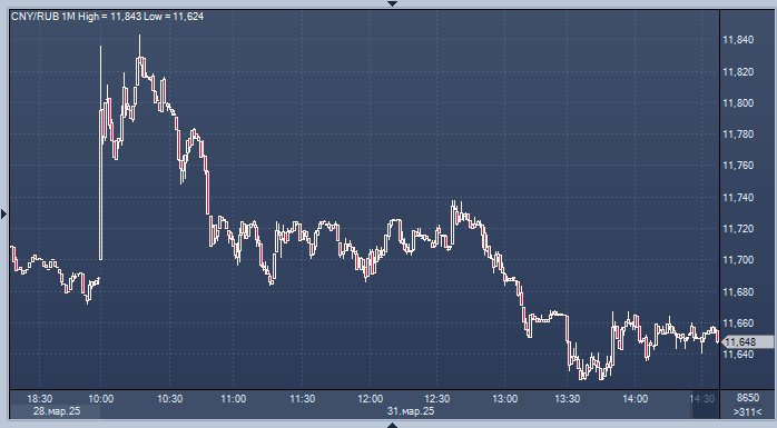 По отношению к китайскому юаню, который является наиболее торгуемой иностранной валютой в России, рубль снизился на 0,2% до 11,70 на Московской бирже.
