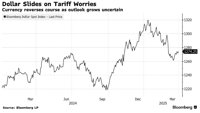 Прогноз аналитиков появился после того, как курс доллара США упал по отношению к большинству своих основных конкурентов в течение первых трёх месяцев года из-за опасений, что политика Трампа может замедлить экономику. В понедельник мировые рынки были потрясены новыми всплесками волатильности, так как трейдеры ожидали следующего объявления Трампа о тарифах в среду.
