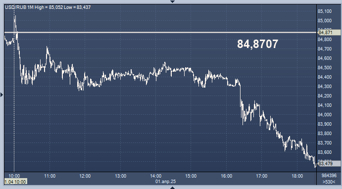 - 84,8707 рубля за 1 доллар