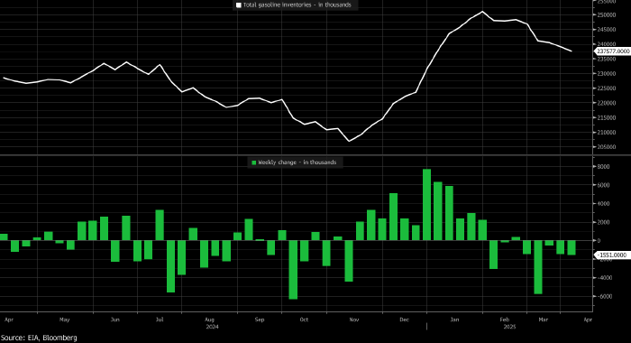 …а вторые — снизились на 1,551 млн баррелей до 237,577 млн баррелей (самый низкий уровень с декабря):