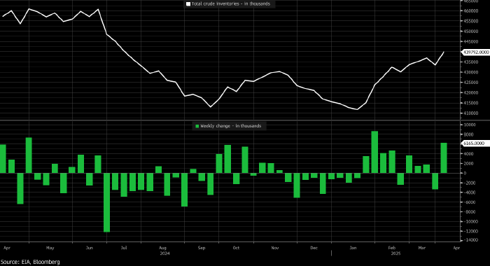 Одновременно с этим общие коммерческие запасы сырой нефти в США подскочили на 6,165 млн баррелей до 439,792 млн баррелей (рекордные значения с этого января и июля прошлого года соответственно):