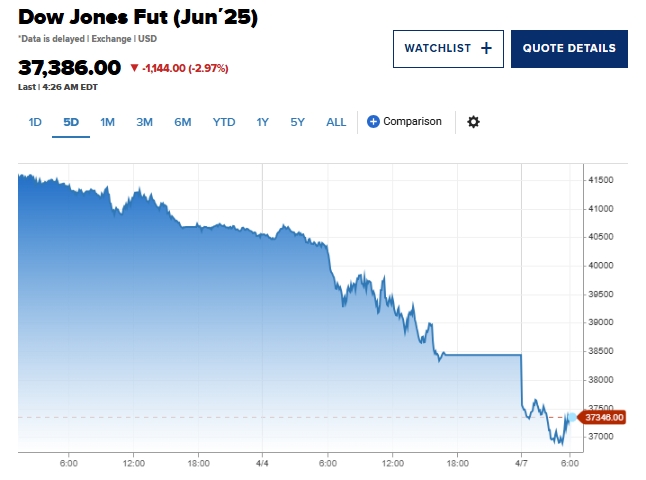 «Маржин-коллы раздаются прямо сейчас», — сказал Крис Рапки, главный экономист FWDBONDS. «Третий день подряд инвесторы на фондовых рынках США резко отрицательно относятся к тарифам Белого дома, введённым в День освобождения, которые потрясли Уолл-стрит».