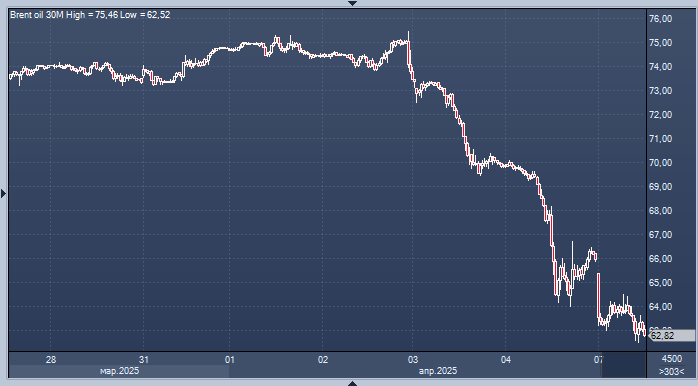 В пятницу нефть подешевела на 7%, так как Китай повысил пошлины на американские товары, что усилило торговую напряжённость и заставило инвесторов заложить в цены более высокую вероятность рецессии. На прошлой неделе Brent и WTI потеряли 10,9% и 10,6% соответственно.