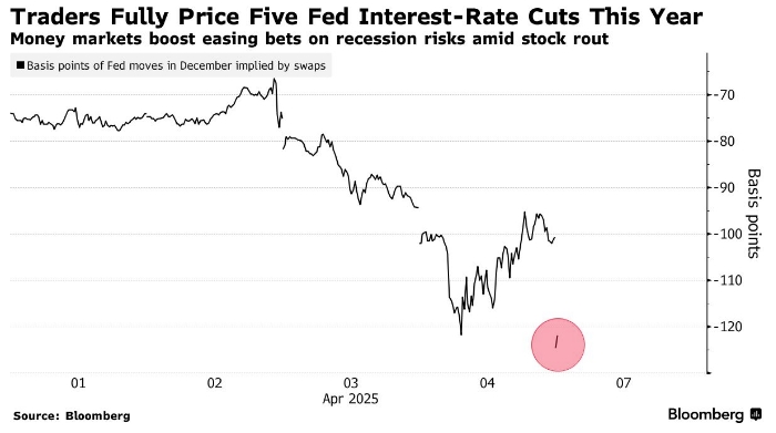 Трейдеры усилили ожидания того, что Федеральная резервная система снизит процентные ставки в текущем году, и усилили угрозу снижения до следующего заседания центрального банка, поскольку тарифы администрации США подогревают опасения глобальной рецессии.