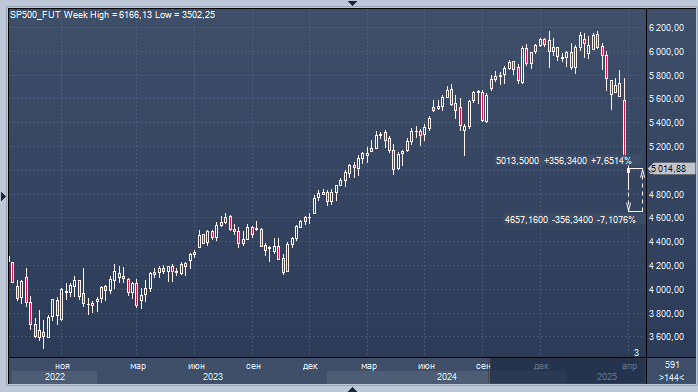 График фьючерса на индекс S&P 500 интервалами в 1 неделю