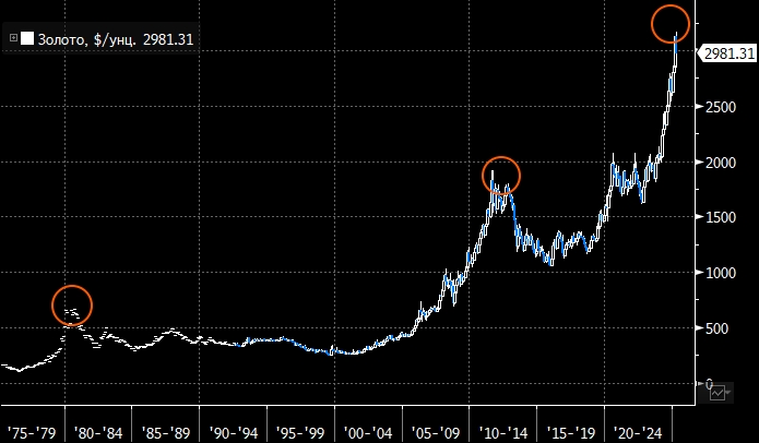 На прошлой неделе спотовая цена на золото достигла рекордных 3167,57 долларов за тройскую унцию и выросла на 16% с начала года, в дополнение к 27%-ному росту в 2024 году. Хотя траектория рынка не будет линейной, аналитики говорят, что выход золота на неизведанную территорию выглядит более устойчивым, чем тот, что наблюдался 45 лет назад.