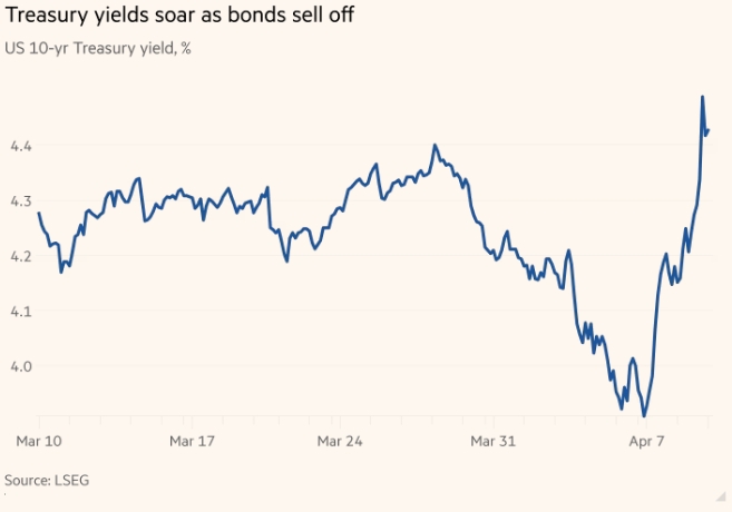 Эти опасения отражаются на рынке казначейских облигаций. Политически чувствительные двухлетние облигации показывают лучшие результаты на фоне спекуляций о снижении ставок. Распродажа более долгосрочных облигаций — доходность 10-летних облигаций выросла на 41 базисный пункт на этой неделе — вызвала сомнения относительно статуса государственного долга США как наименее рискованного актива. Также появились предположения о том, что хедж-фонды сворачивают популярную торговлю с использованием кредитного плеча, а иностранные держатели продают облигации.