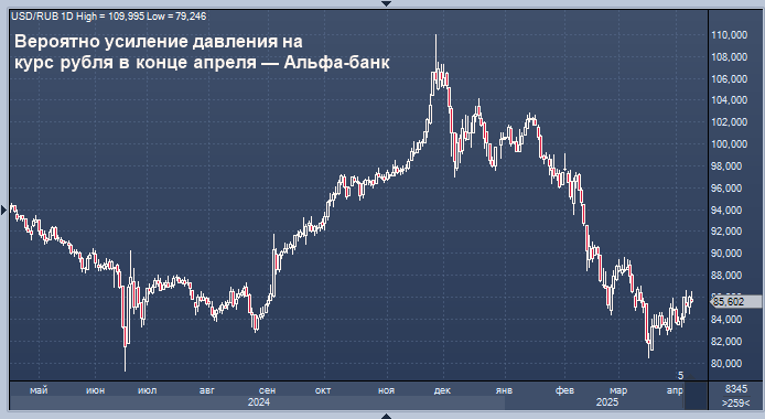 "С учетом подготовки к продолжительному периоду майских праздников и геополитической неопределенности, в конце текущего месяца может наблюдаться некоторое давление на валютный курс", - прогнозируют Орлова и Кобяк.