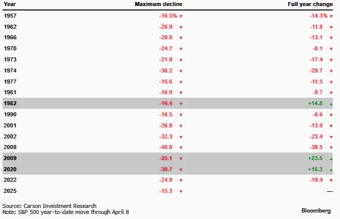 По данным за 16 лет, собранным Райаном Детриком из Carson Group, когда индекс акций США падал на 15% и более в любой момент года, индекс S&P 500 восстанавливался и завершал 12-месячный период с положительным результатом только в 3 случаях из 16.
