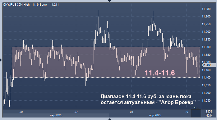 Торговый диапазон пары юань/рубль в границах 11,4-11,6 руб. за юань пока остается актуальным, считает руководитель направления инвестиционного консультирования "Алор Брокера" Алексей Антонов.