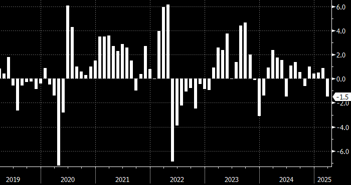 Одновременно с этим цены производителей в России показали в марте первое в этом году снижение в базисе месяц к месяцу: -1,5% м/м против +0,9% м/м в феврале (см. график ниже). Следует отметить, что данное снижение сложно назвать сезонным, т. к. в марте 2021–2024 годов показатель показывал уверенный рост.