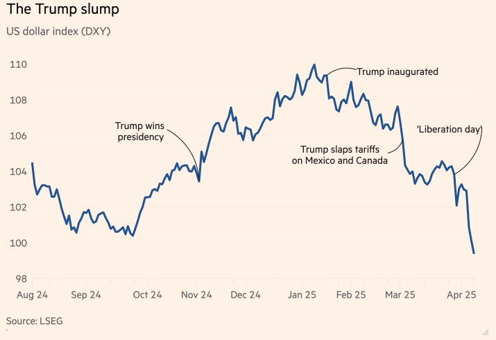 Столкнувшись с протестами на финансовых рынках, президент объявил о 90-дневной частичной приостановке, но инвесторы по-прежнему настороже. Доллар, который обычно укрепляется во времена финансовых и экономических потрясений, вместо этого резко упал.
