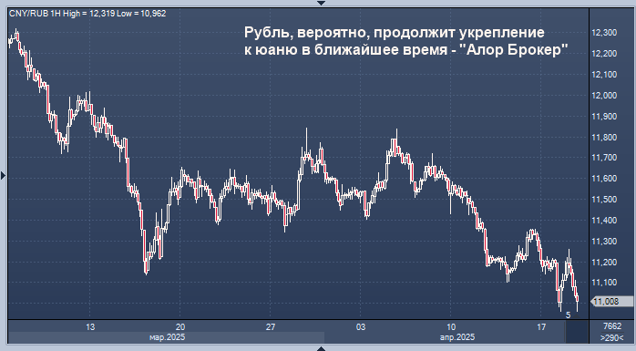 Рубль, вероятно, продолжит укрепление по отношению к юаню в ближайшее время, не исключен уход в район 10,5 руб. за юань, а то и ниже, считает руководитель направления инвестиционного консультирования "Алор Брокера" Алексей Антонов.