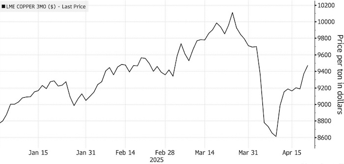Трехмесячные фьючерсы выросли примерно до $9 450 за тонну на торгах в Лондоне после повышения на 2% во вторник. Министр финансов США Скотт Бессент заявил, что тарифное противостояние с Китаем не может быть устойчивым, и две крупнейшие экономики должны будут найти способы деэскалации. Президент Дональд Трамп также сказал, что планирует быть "очень милым" с Пекином в любых торговых переговорах.