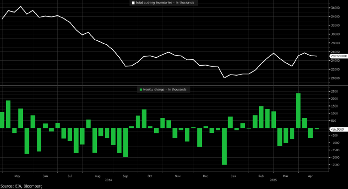 Запасы в Кушинге снизились вторую неделю подряд: на этот раз на 86 тыс. баррелей.