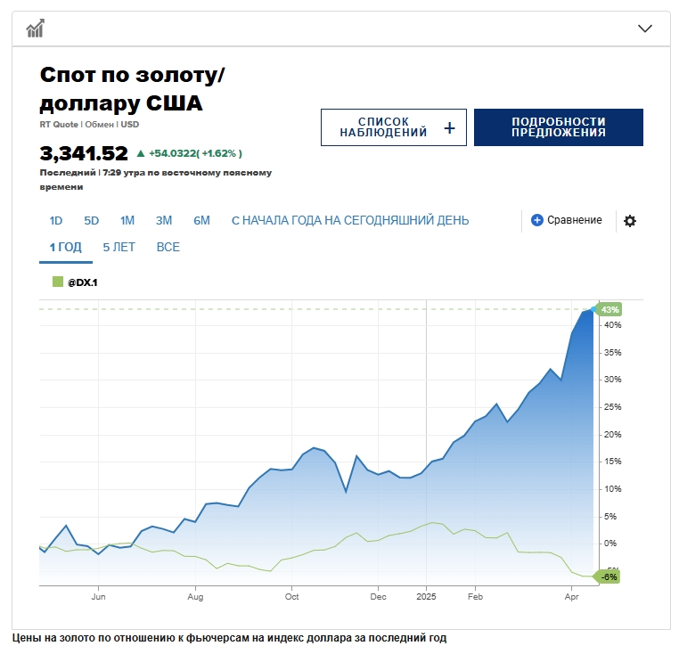 «Из-за того, что доллар США и казначейские облигации теряют свою привлекательность как активы-убежища, спрос на них снижается, а золото становится более востребованным», — добавил Дхар.