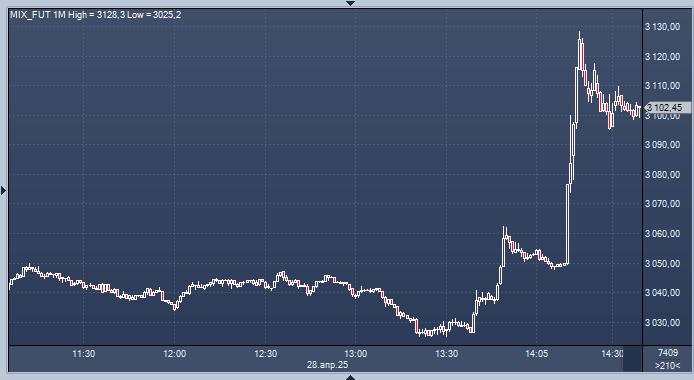 График фьючерса на индекс Мосбиржи интервалами в 1 минуту