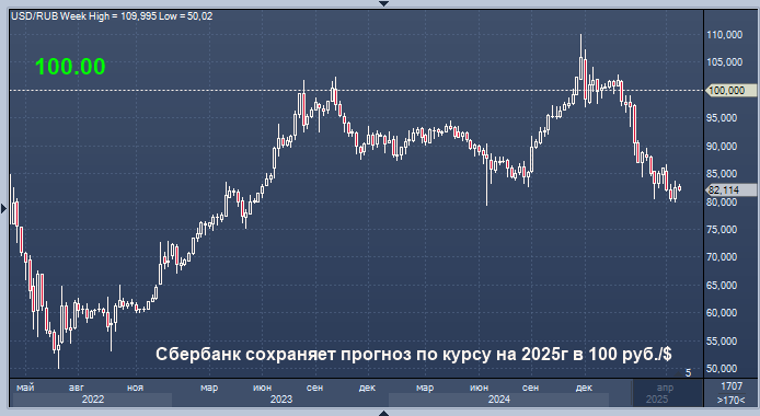 Сбербанк пока сохраняет прогноз по курсу на 2025 год в размере 100 рублей за доллар, отмечает сложность прогнозирования этого фактора из-за неопределенности развития геополитической ситуации, заявил зампред правления, финансовый директор Сбербанка Тарас Скворцов.