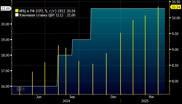 "ЦБ РФ уделил равное внимание как факторам улучшения инфляционного фона, так и рискам для него в прошедшую пятницу. Это значит, что регулятор, вероятно, сохранит выжидательную позицию на июньском заседании и может начать снижать ключевую ставку в июле, если текущие тенденции продолжатся. В нашем базовом сценарии к концу 2025 года она может опуститься до 17% годовых", - пишут эксперты в комментарии.