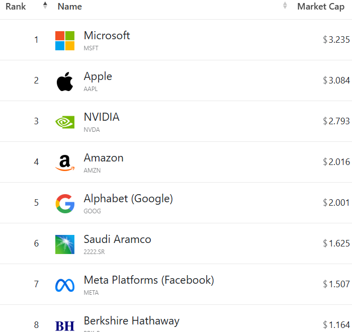 Капитализация самых дорогих компаний мира в трлн USD (Meta признана экстремистской, запрещена в РФ). Источник: Companiesmarketcap