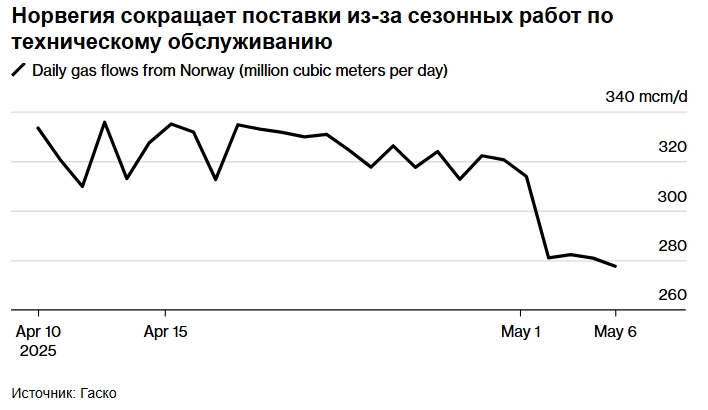 Возобновление закупок в других странах может затруднить восстановление запасов. Летние работы также сокращают потоки по трубопроводам от ведущего поставщика Европы — Норвегии, а некоторые незапланированные отключения ещё больше ограничивают поставки.