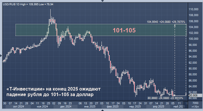 "Т-Инвестиции" подтверждают прогнозный диапазон для пары рубль/доллар 101-105 руб./$1 на конец 2025 года, сообщается в комментарии главного экономиста Софьи Донец.