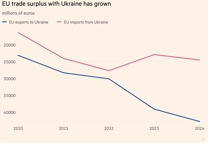 Ранее у ЕС и Украины было соглашение о свободной торговле, но после начала военного конфликта с Россией в 2022 году было принято решение временно приостановить действие оставшихся пошлин.