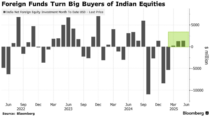 Иностранные фонды становятся крупными покупателями индийских акций. Индия: чистые иностранные инвестиции в акционерный капитал за месяц по сегодняшний день в долларах США. Источник: Блумберг