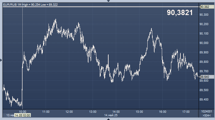 - 90,3821 рубля за 1 евро
