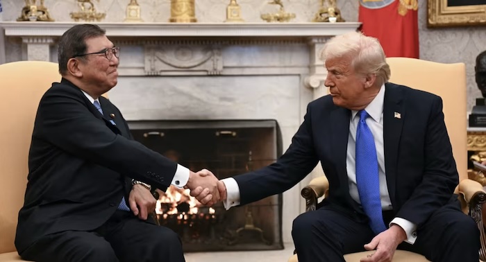 На фото премьер-министр Японии Сигэру Исиба и президент США Дональд Трамп