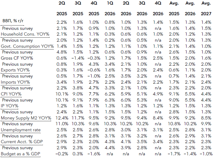 Прогноз по ВВП РФ на II кв. 2025 г. повышен до +2,2% г/г, на III кв. — понижен до +1,6% г/г.