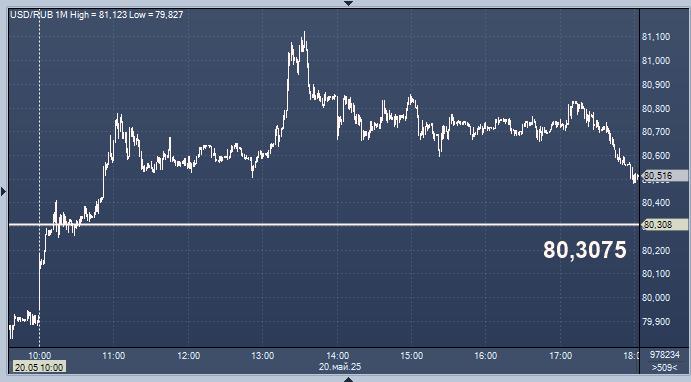 - 80,3075 рубля за 1 доллар