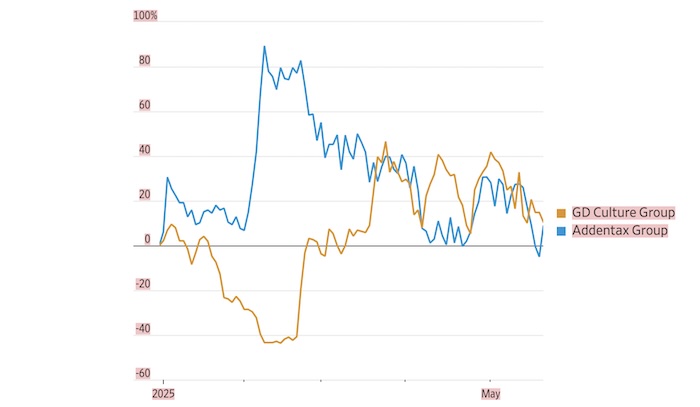 Динамика акций GD Culture и Addentax с начала года. Источник The Wall Street Journal