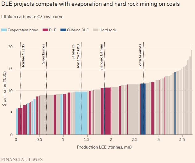 По оценкам Benchmark, совокупные затраты на добычу нефтяного рассола DLE, включая добычу, переработку, транспортировку и роялти, в настоящее время составляют около 10 000 долларов за тонну. Таким образом, совокупные затраты Standard составляют около 10 735 долларов за тонну, что значительно выше, чем у наиболее конкурентоспособных испарительных прудов и гибридных производителей, где затраты могут составлять всего 6000 долларов за тонну.