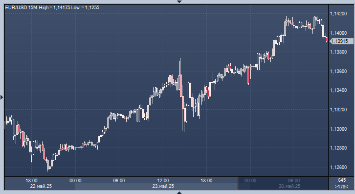 Евро вырос на 0,55% и достиг отметки $1,1418 впервые с 29 апреля.