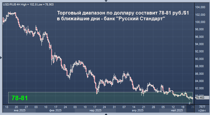 Торговый диапазон по доллару, скорее всего, составит в ближайшие дни 78-81 руб./$1, по евро - 89-92 руб./EUR1, полагает директор департамента операций на финансовых рынках банка "Русский Стандарт" Максим Тимошенко.