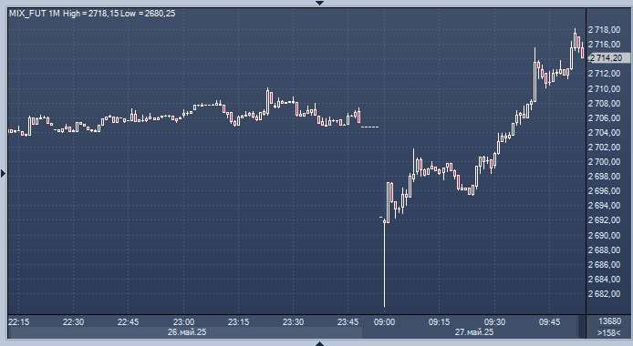 График фьючерса на индекс Мосбиржи интервалами в 1 минут