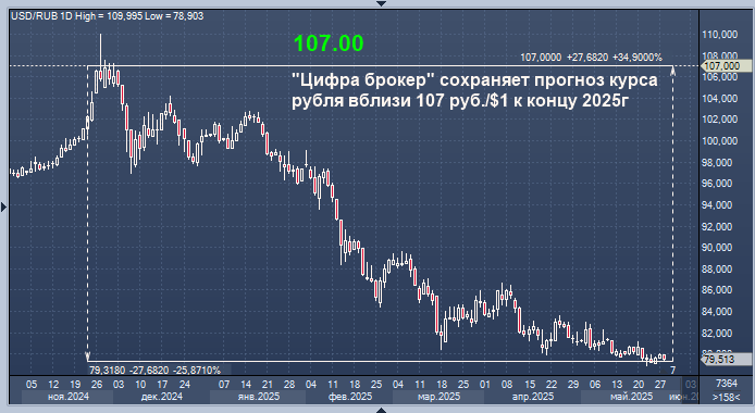 "Вследствие избыточного предложения валюты на рынке рубль сохраняет устойчивость, но маловероятно, что такая тенденция сохранится надолго. Мы по-прежнему ожидаем валютный курс вблизи 107 руб./$1 к концу 2025 года", - говорится в комментарии аналитиков.