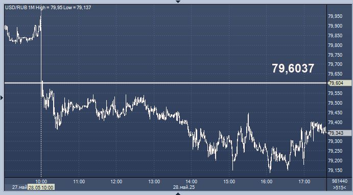 - 79,6037 рубля за 1 доллар